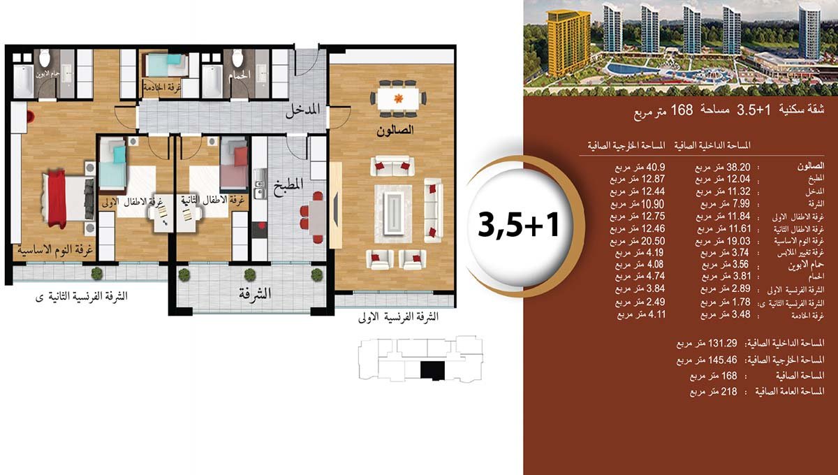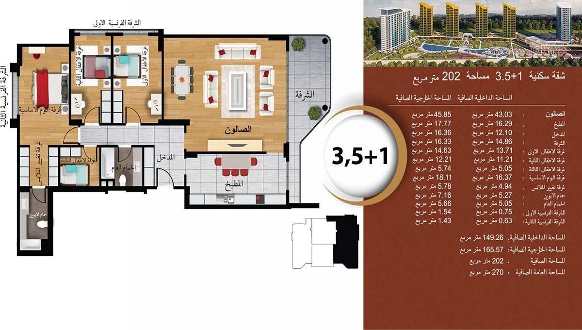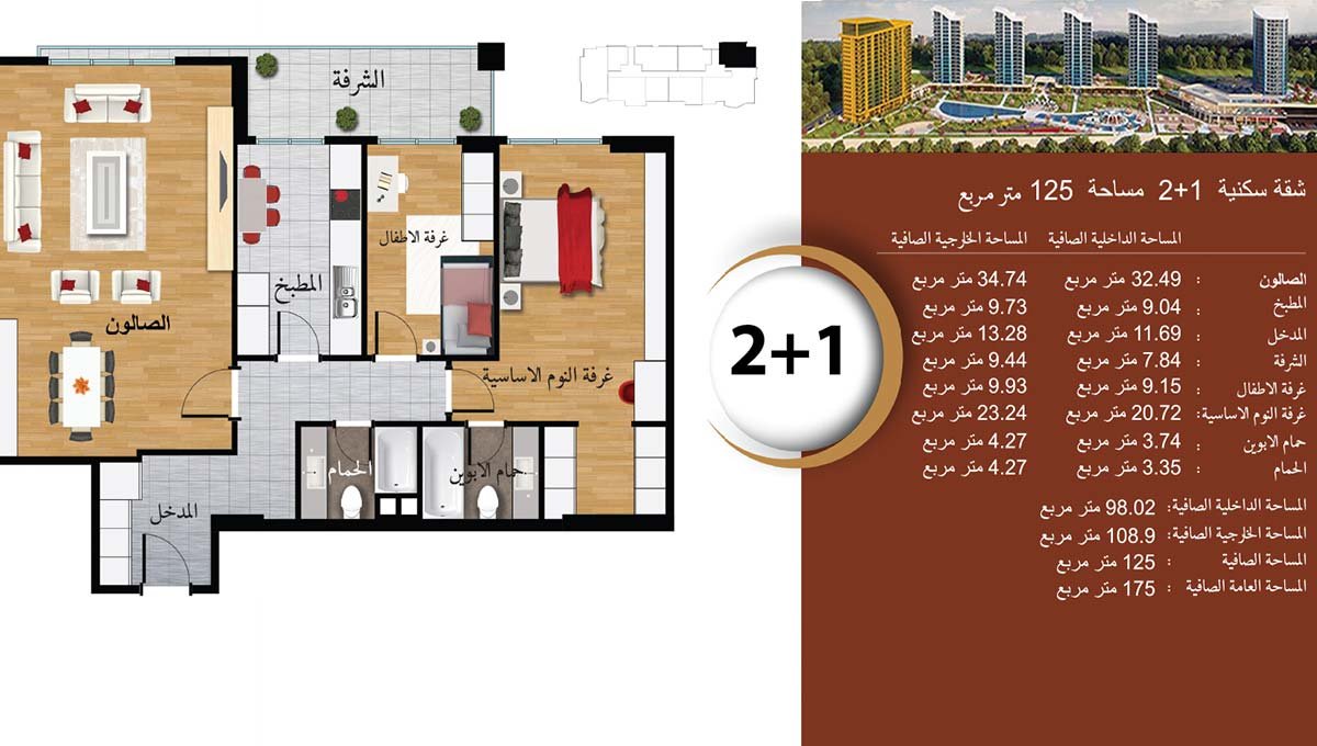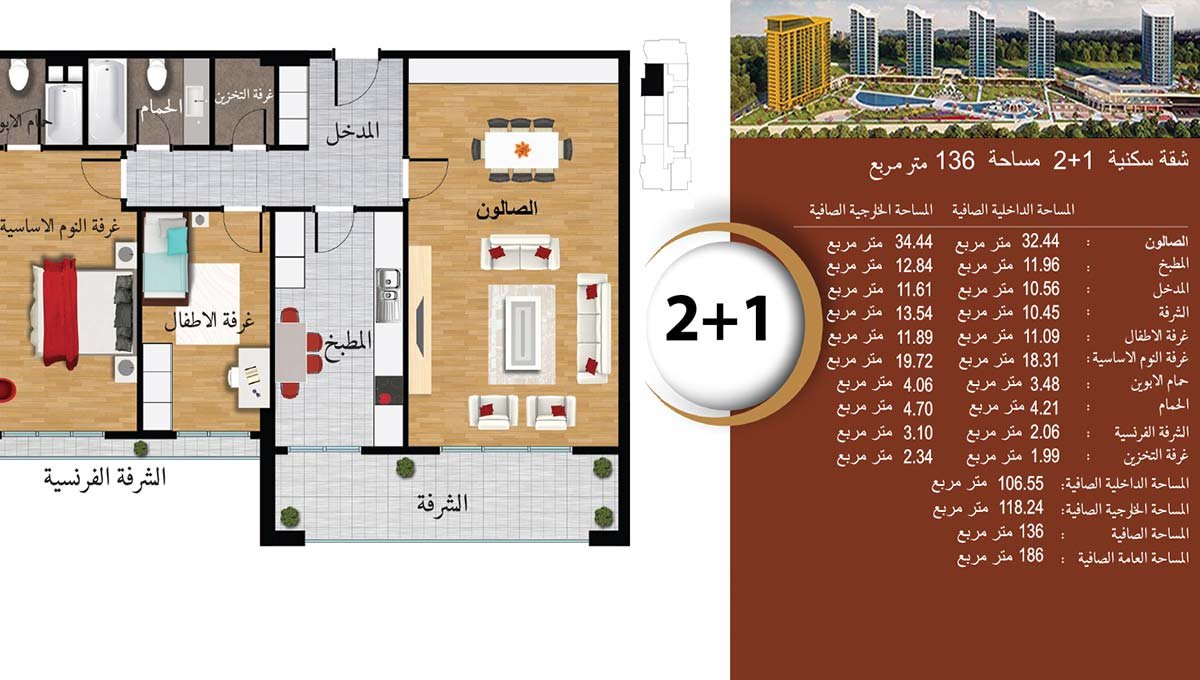 انواع الشقق : 2+1 \ 3+1 \ 3.5 +1 \ 4.5+1 \ 5.5+1 \ 7.5+2