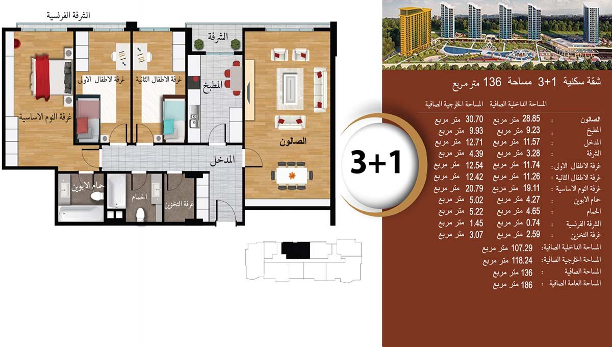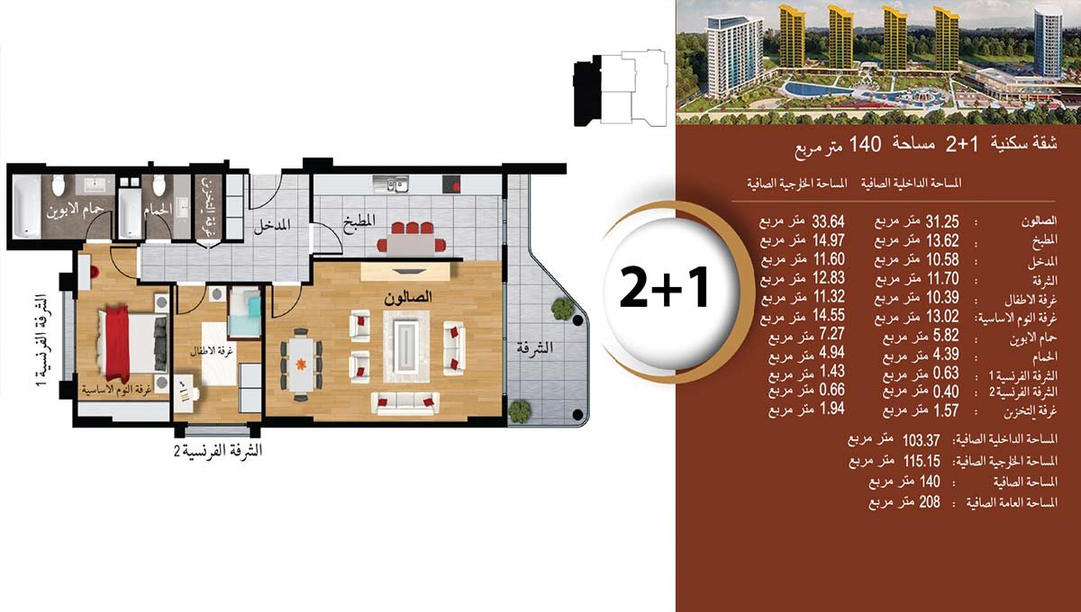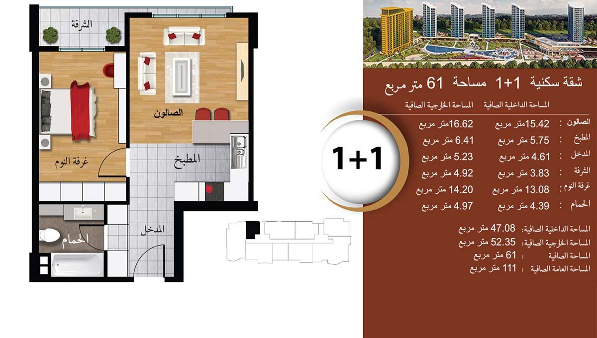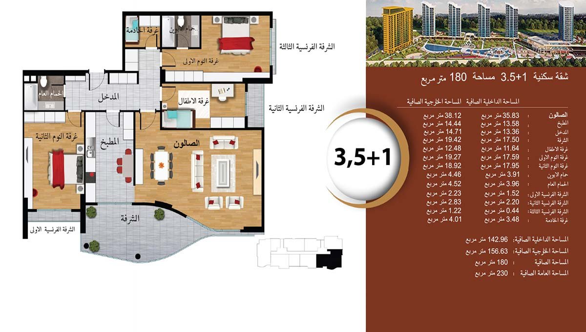انواع الشقق : 2+1 \ 3+1 \ 3.5 +1 \ 4.5+1 \ 5.5+1 \ 7.5+2