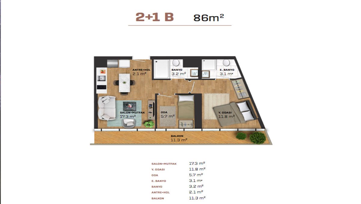 انواع الشقق : 1+1 \ 2+1 \ 3+1