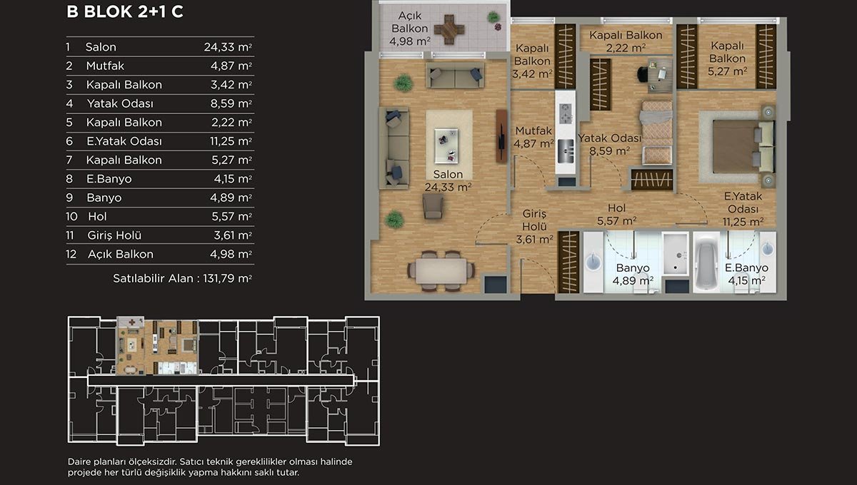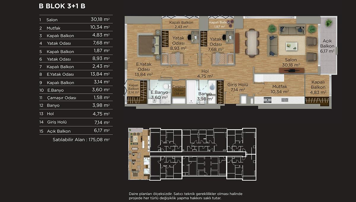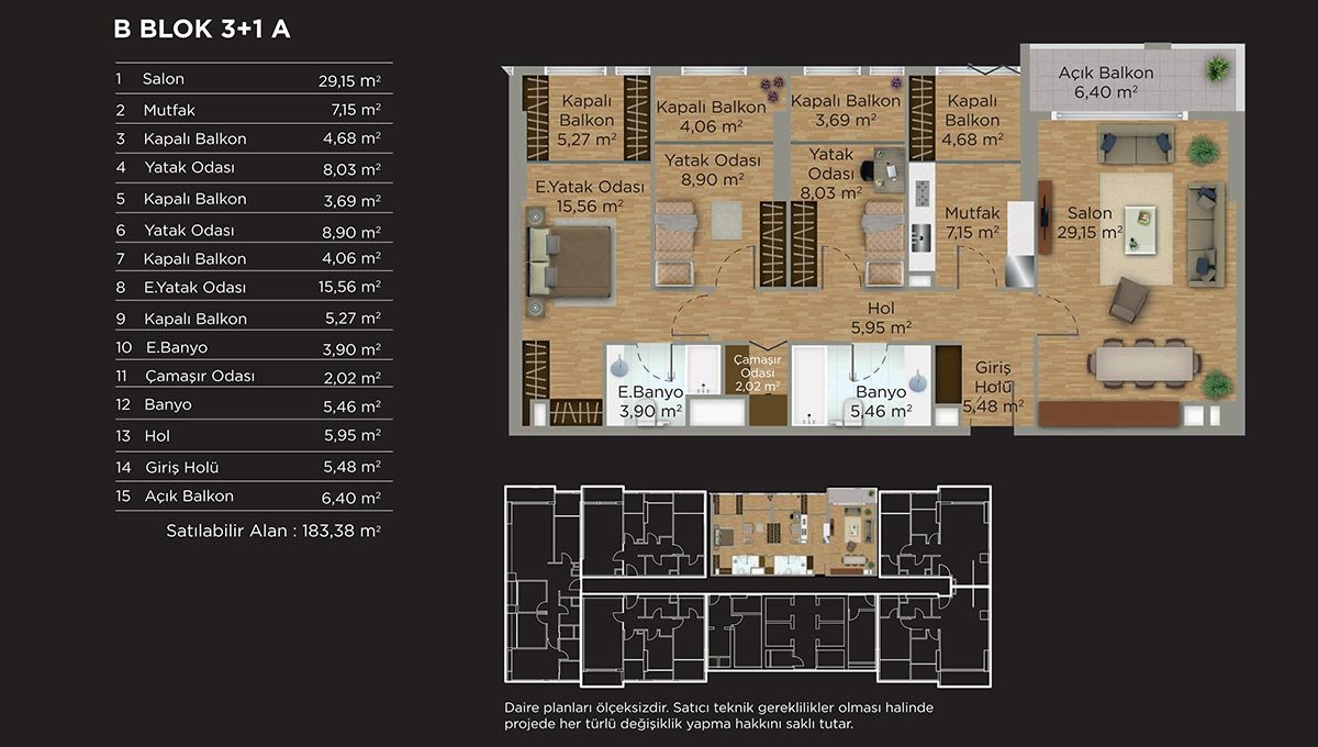 انواع الشقق : 0+1 , 1+1 , 2+1 , 3+1 ,4+1